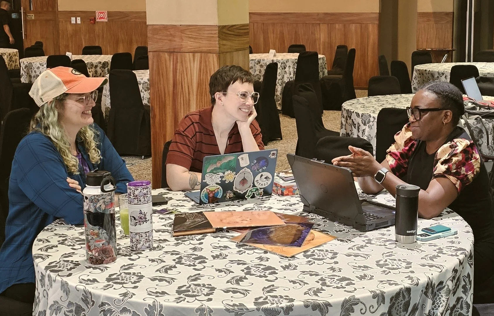 Sienna Cenere, Dr. Iroro Tanshi, and myself planning for the SciArt project at the 2024 NASBR meeting.